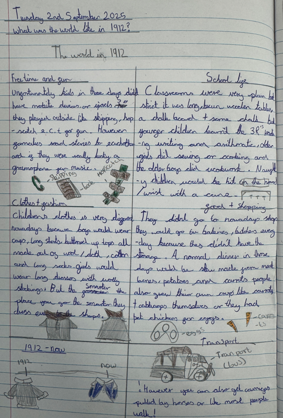 In history, the children looked closely at what life was like on the home front. They learned about the evacuation of children from cities to the countryside and imagined what it might have felt like to leave their homes and families behind. They also discovered the challenges faced during the Blitz and explored how ordinary people adapted to life under threat.