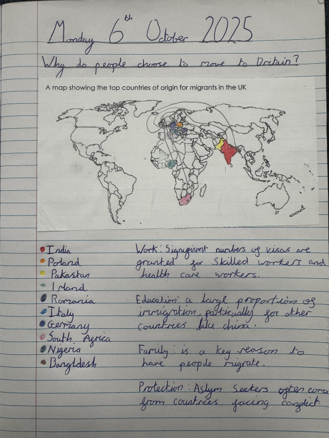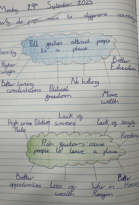 This term, we have been learning all about migration. We have explored why people move to different countries and what 'push' and 'pull' factors are. We have also looked at reasons that people might want to move specifically to Britain.